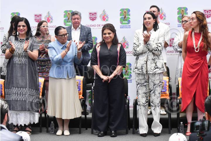 CIUDAD DE MÉXICO, 07MAYO2025.- Clara Brugada, jefa de Gobierno, durante la presentación de "Ciudad Mundialista" que marca el proyecto de las actividades turísticas a 400 días del Mundial de futbol 2026 que tendrá como una de sus sedes la capital. La acompañan: Alejandra Frausto, secretaria de Turismo de la capital; Rosa Icela Rodríguez, secretaria de Gobernación; Josefina Rodríguez, secretaria de Turismo, y Gabriela Cuevas. FOTO: MARIO JASSO/CUARTOSCURO.COM