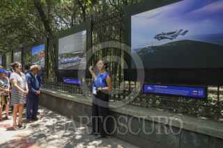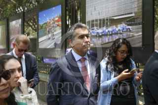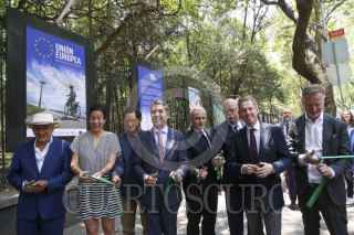 CIUDAD DE MÉXICO, 07MAYO2025.- Delphine Borione, embajadora de Francia en México; Francisco André, embajador de la Unión Europea en México, Clemens von Goetze, recorrieron la exposición "Hacia un futuro verde e inclusivo" que se encuentra en las rejas del Bosque de Chapultepec, a la altura del Jardín Botánico. Las imágenes ahí mostradas muestran avances tecnológicos y políticas públicas que han priorizado el respeto al medio ambiente en los países de Europa. FOTO: MOISÉS PABLO/CUARTOSCURO.COM