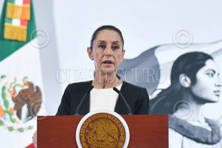 CIUDAD DE MÉXICO, 08MAYO2025.- Claudia Sheinbaum, presidenta de México, durante su intervención en la conferencia matutina realizada en Palacio Nacional. FOTO: MARIO JASSO/CUARTOSCURO.COM