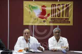 CIUDAD DE MÉXICO, 08MAYO2025.- Efraín Rábago Echegoyen, residente de la Asociación de Aves de Combate, y Álvaro López Ríos, Secretario General de la UNTA, ofrecieron una conferencia de prensa del Movimiento por la Soberanía y Tradición Mexicana, el cual lideran, y esperan convertirlo en partido político, ya que señalaron que cuentan con el apoyo de todas las personas que se dedican a la pelea de gallos o lidia de toros, las cuales consideran tradiciones que valen la pena conservar ya que son parte de la identidad mexicana. FOTO: MOISÉS PABLO/CUARTOSCURO.COM