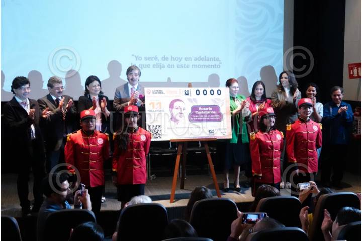 CIUDAD DE MÉXICO, 08MAYO2025.- Jesús Ramírez, vocero de Presidencia; Gabriel Guerra Castellanos, hijo de Rosario Castellanos, y Olivia Salomón,directora de la Lotería Nacional, durante la develación del billete conmemorativo del 100 aniversario del natalicio de la escritora, realizada en el Antiguo Colegio de la Santa Cruz Tlatelolco FOTO: GRACIELA LÓPEZ/CUARTOSCURO.COM