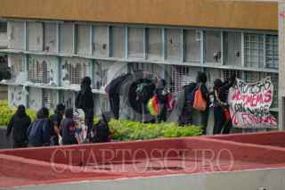 CIUDAD DE MÉXICO 08MAYO2025.- Al menos 3 personas resultaron heridas luego de una protesta por supuestos estudiantes en las instalaciones de Ciudad Universitaria, esto a 1 año del ataque poriil que deribo con la muerte de un estudiante del CCH Naucalpan. FOTO: ROGELIO MORALES CUARTOSCURO.COM