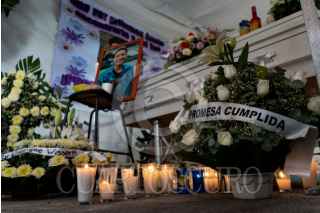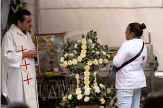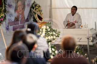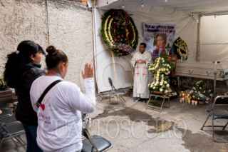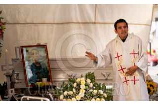CIUDAD DE MÉXICO, 09MAYO2025.- Debido a atrasos en la Fiscalía de Morelos, el cuerpo de Margarita Cuevas Suárez fue velado por segundo día consecutivo en su casa, ubicada en Ampliación Tepepan, Xochimilco. El padre Arturo Carrasco, obispo que ha acompañado a las familias buscadoras, ofició una misa para dar gracias y honrar la memoria de la joven que durante dos años y medio estuvo desaparecida y que se encontraba en el Instituto de Ciencias Forenses (INCIFO) de la capital sin ser identificada. FOTO: GALO CAÑAS/CUARTOSCURO.COM