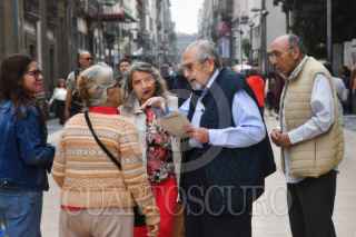 CIUDAD DE MÉXICO, 10MAYO2025.- Bernardo Batiz Vázquez, realizó un jornada de entrega de folletos en la calle Francisco I. Madero del centro histórico, para promover su candidatura a Magistrado del Tribunal de Disciplina del Poder Judicial. FOTO: MARIO JASSO/CUARTOSCURO.CO
