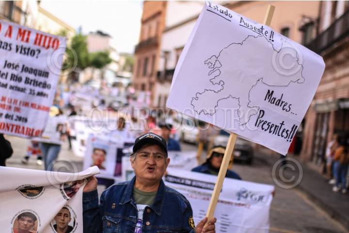 ZACATECAS, ZACATECAS, 10MAYO2025.- Madres de personas desaparecidas marcharon por las principales calles del centro histórico, del Jardín de la Madre a la Plaza de Armas, como parte de la jornada de la XIII Marcha de la Dignidad Nacional Madres Buscando a sus Hijos, Hijas, Verdad y Justicia. FOTO: ADOLFO VLADIMIR /CUARTOSCURO.COM