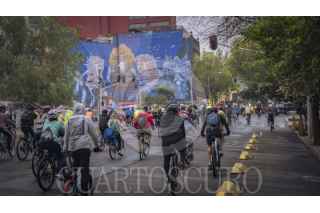 CIUDAD DE MÉXICO, 11MAYO2025.- Para celebrar y dar la bienvenida a la próxima Ciclovía "Gran Tenochtitlan", anunciada por la jefa de Gobierno, Clara Brugada Molina, que correrá sobre Calzada Tlalpan, esta mañana cientos de ciclistas rodaron 15 kilómetros sobre esta importante vialidad, con el objetivo de seguir apropiándose de más espacios para la movilidad sustentable. En la "Gran Rodada Ciclista Tenochtitlan", organizada por el Subsistema de Educación Comunitaria PILARES, a cargo del Coordinador General Javier Hidalgo, seiscientos ciclistas pudieron reconocer la Calzada Tlalpan del Estadio Azteca al Zócalo capitalino en un ambiente familiar y seguro. FOTO: GOBIERNO DE LA CIUDAD DE MÉXICO/CUARTOSCURO.COM