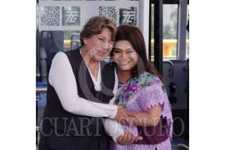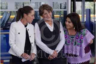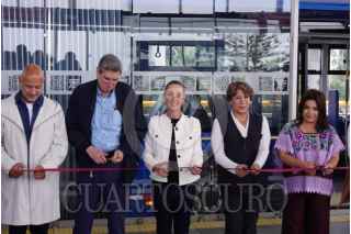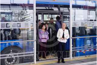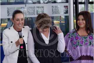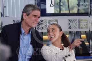 CIUDAD DE MÉXICO, 11MAYO2025.- Claudia Sheinbaum, presidenta de México, conversa con su esposo Jesús María Tarriba durante la puesta en marcha de las pruebas preoperativas de la Línea 11 del Trolebús Elevado Chalco-Santa Martha. FOTO: GRACIELA LÓPEZ/CUARTOSCURO.COM