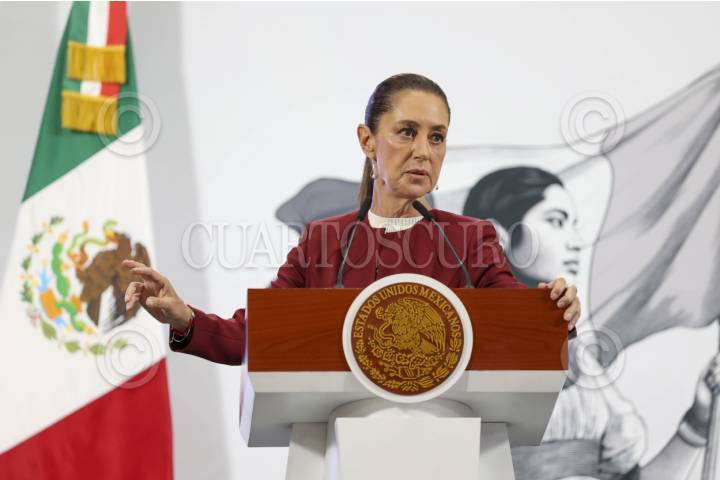 CIUDAD DE MÉXICO, 12MAYO2025.- Claudia Sheinbaum, Presidenta de, México, habló sobre el caso del retiro de la visa de turista a la gobernadora de Baja California, Marina del Pilar Ávila, y de la cancelación de exportaciones de ganado vacuno, ambas medidas por el Gobierno de Estados Unidos, durante la mañanera. También durante la misma les entregó el galardón Mérito en Enfermería 2025 a las enfermeras Juana Jiménez Sánchez, Yolanda Flores Peña, y Sandra Sonalí Olvera Arreola. La acompañaron las autoridades de salud; David Kershenobich, Secretario de Salud; Siempre Robledo, IMSS; Martí Bagres, ISSSTE; Alejandro Svarch Pérez, IMSS Bienestar; Patricia Elena Clark Peralta, Consejo de Salubridad General, y Ariadna Montreal, Secretaría del Bienestar. FOTO: MOISÉS PABLO/CUARTOSCURO.COM