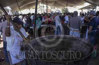 SANTA ANA CHIAUTEMPAN, TLAXCALA, 12MAYO2025.- Habitantes de esta comunidad se reunieron para hacer el llamado “mole prieto”, realizado a base de maíz y carne de cerdo, el cual se prepara y consume de manera ritual en el barrio de Tlapacoya del municipio de Chiautempan como parte de la temporada de pascuas. El mencionado platillo, tiene reminiscencias de la época prehispánica, ya que este centro poblacional fue uno de los primeros en la región, distinguiéndose por su tradición textil y su gastronomía. FOTO: J GUADALUPE PÉREZ/CUARTOSCURO.COM
