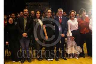 CIUDAD DE MÉXICO. 12MAYO2025.- La secretaria de Cultura, Claudia de Icaza acompaño al director de Canal 22, Alonso Millán Zepeda a la presentación de la nueva programación así como conductores de este canal de televisión. El evento tuvo lugar en los estudios Churubusco. FOTO: VICTORIA VALTIERRA/CUARTOSCURO.COM