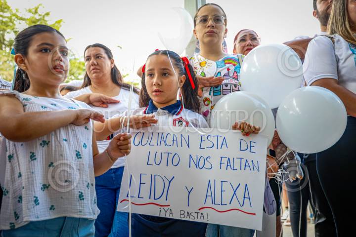 CULIACÁN, SINALOA, 12MAYO2025.- En un emotivo homenaje, maestros, alumnos y padres de familia recordaron a Alexa y Leydi, las dos niñas de 7 y 11 años cuya vida fue arrebatada en Badiraguato mientras disfrutaban del ‘puente’ escolar. En la plaza cívica de la Escuela Primaria, se montó un altar con sus fotografías, rodeado de flores y veladoras, donde sus compañeros dejaron ofrendas y cartas como despedida. Tras los honores a la bandera, sus maestras, María del Socorro Cárdenas y Paola Román Contreras, compartieron una breve semblanza de ambas, destacando su alegría, compromiso con sus estudios y el cariño que irradiaban en cada rincón del aula. Como muestra de indignación y exigencia de justicia, familiares, docentes y alumnos se manifestaron al exterior del plantel, bloqueando el boulevard Enrique Cabrera, exigiendo respuestas y medidas ante la tragedia que ha sacudido a la comunidad. FOTO: JOSÉ BETANZOS ZÁRATE/CUARTOSCURO.COM