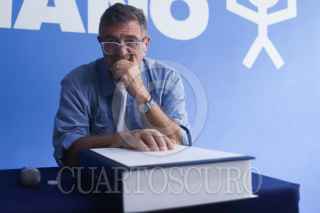 CIUDAD DE MÉXICO, 13MAYO2025.- Está mañana el escritorio argentino, Guillermo Saccomanno, presentó su libro "Arderá el Viento" el cual le otorgó el premio Alfaguara de Novela 2025. FOTO: DANIEL AUGUSTO/ CUARTOSCURO.COM