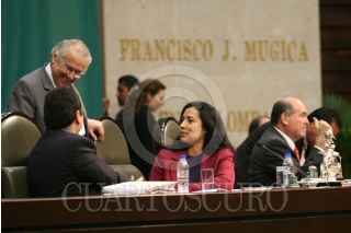 MÉXICO D.F. 30OCTUBRE2007.-Juan José Rodríguez Prats, diputado del PAN diáloga con Ruth Zavaleta, diputada del PRD y presidenta de la mesa directiva durante la sesión en la Cámara de Diputados. FOTO: GUILERMO PEREA/CUARTOSCURO.COM