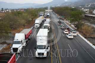 CHILPANCINGO, GUERRERO, 13MAYO2025.- Habitantes del núcleo agrario de Tilapa, municipio de Malinaltepec bloquearon por más de ocho horas la Autopista del Sol, a la altura del Parador del Marqués, exigen al gobierno estatal ser reubicados ya que señalaron que cuentan con un dictamen de Protección Civil de que tras el paso del huracán Ingrid y Manuel el terreno en el que están sus casas es inestable. Unos 500 pobladores llegaron en camionetas a Chilpancingo alrededor de las 10 de mañana, y poco antes de las 11 comenzaron a bloquear. Félix Noe Galeana Flores, Comisario del núcleo agrario de Tilapa, pidió al gobierno estatal adquirir 600 hectáreas en San Luis Acatlan, ya que Tilapa se encuentra en un lugar accidentado. FOTO: DASSAEV TÉLLEZ ADAME/CUARTOSCURO.COM