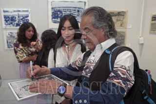 GUADALAJARA, JALISCO. 14MAYO2025.- Pedro Valtierra, Director de la Revista y Agencia de fotografía Cuartoscuro, quien actualmente celebra 50 años de trayectoria, acudió como invitado de honor a la exposición fotográfica colectiva de alumnos de la escuela de Fotografía de la Universidad de Guadalajara “Primera Rectora UdeG”, que fue encabezada por el profesor Héctor Orozco, dicho evento tuvo lugar en el Congreso del Estado. FOTO: FERNANDO CARRANZA GARCIA / CUAARTOSCURO.COM