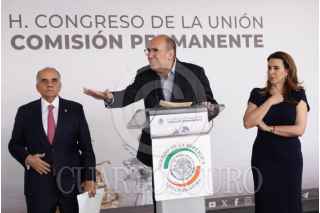CIUDAD DE MÉXICO, 14MAYO2025.- El diputado Rubén Moreira, coordinador de la bancada del PRI, acompañado de los senadores Manuel Añorve y Carolina Viggiano durante su conferencia en el Patio del Federalismo. FOTO: GRACIELA LÓPEZ/CUARTOSCURO.COM