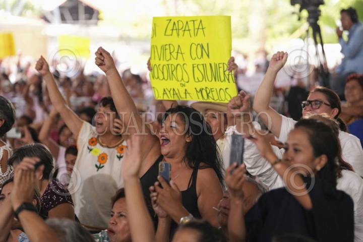 CUAUTLA, MORELOS, 14MAYO2025.- Mujeres durante su mensaje en el evento Tejedoras de la Patria, un programa del gobierno federal para garantizar a las mujeres una vida sin violencia. FOTO: PRESIDENCIA/CUARTOSCURO.COM