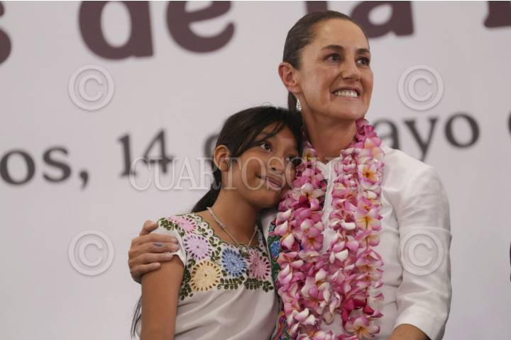 CUAUTLA, MORELOS, 14MAYO2025.- Claudia Sheinbaum, Presidenta de México,, durante su mensaje en el evento Tejedoras de la Patria, un programa del gobierno federal para garantizar a las mujeres una vida sin violencia. FOTO: PRESIDENCIA/CUARTOSCURO.COM