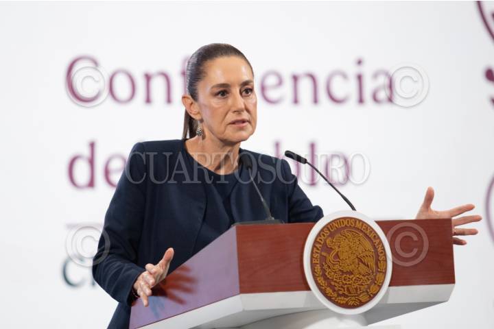 CIUDAD DE MÉXICO, 15MAYO2025.- Claudia Sheinbaum Pardo, presidenta de México, durante conferencia matutina en Palacio Nacional. FOTO: ANDREA MURCIA /CUARTOSCURO.COM
