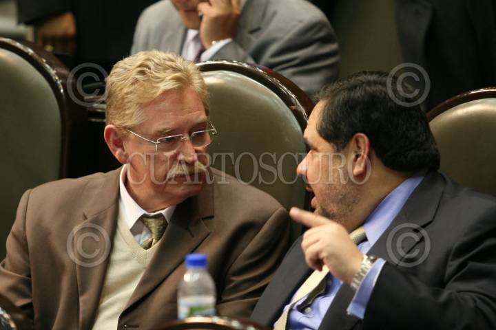 MÉXICO D.F. 30OCTUBRE2007.- Diodoro Carrasco y Juan José Rodríguez Prast dipútados del PAN emiten su voto frente a Javier González Garza diputado del PRD, durante la sesión en la Cámara de Diputados. FOTO: GUILLLERMO PEREA/CUARTOSCURO.COM