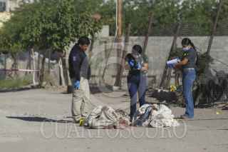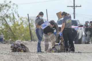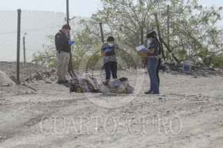 CIUDAD JUÁREZ, CHIHUAHUA, 15MAYO2025.- Esta mañana dos cuerpos encobijados fueron abandonados en la vía pública, a un costado de un yonke ubicado en la colonia Salvárcar. El hallazgo se dio tras un reporte al número de emergencias y movilizó a policías municipales, agentes estatales y elementos de la Guardia Nacional. Con este hecho, suman 26 homicidios en lo que va de mayo en la ciudad fronteriza. FOTO: CARLOS SÁNCHEZ COLUNGA/CUARTOSCURO.COM