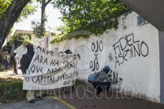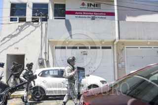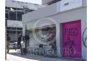 XALAPA, VERACRUZ, 15MAYO2025.- Encapuchados vandalizaron las instalaciones del INE en Xalapa en protesta a los diversos homenajes que han realizado en memoria de Fidel Herrera, ex gobernador de Veracruz, quien murió hace un par de semana. Elementos de la Guardia Nacional dispersaron a los manifestantes ya que en las oficinas del instituto se encuentra la papelería electoral para la elección del Poder Judicial. El contingente tras abandonar las oficinas del INE se dirigió a las instalaciones del PRI, en donde también hicieron actos vandálicos. Algunos de los inconformes llevaron retratos del fotoperiodista Rubén Espinosa, quien fue asesinado en circunstancias que jamás han sido aclaradas. FOTO: YERANIA ROLÓN/CUARTOSCURO.COM