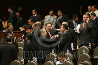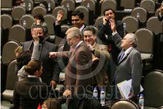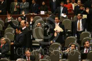 MÉXICO D.F. 30OCTUBRE2007.- Diodoro Carrasco y Juan José Rodríguez Prast dipútados del PAN emiten su voto frente a Javier González Garza diputado del PRD, durante la sesión en la Cámara de Diputados. FOTO: GUILLLERMO PEREA/CUARTOSCURO.COM