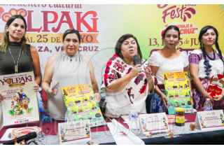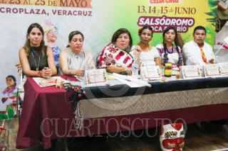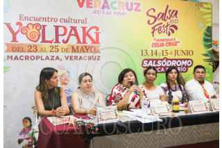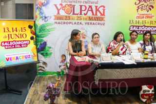 CIUDAD DE MÉXICO. 16MAYO2025.- Conferencia de prensa con motivo de los eventos “Encuentro Cultural Yolpaki” y “Salsa Fest 2025”, a realizarse del 23 al 25 de mayo en Boca del Río, en Veracruz. Marcela Camacho, Xochitl Molina, Nilda Patricia Hernández y Yolo Alvarado este medio día en la secretaría de Turismo. FOTO: VICTORIA VALTIERRA/CUARTOSCURO.COM