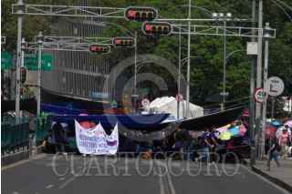 CIUDAD DE MÉXICO 16MAYO2025.- Integrantes de la Coordinadora Nacional de Trabajadores de la Educación, bloquearon diversas vialidades incluyendo Circuito Interior y Paseo de la reforma a la altura de la Estela de Luz, esto en los dos sentidos de ambas arterias. Los inconformes exigen un mesa de diálogo con autoridades de gobierno. FOTO: ROGELIO MORALES CUARTOSCURO.COM