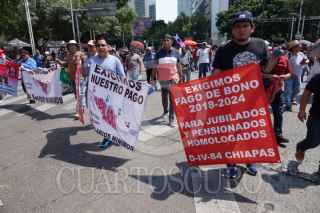 CIUDAD DE MÉXICO, 16MAYO2025.- Maestras y maestros de la Coordinadora Nacional de Trabajadores de la Educación (CNTE) mantuvieron un bloqueo de horas al cruce de Paseo de la Reforma e Insurgentes Sur en exigencia a que la presidenta Claudia Sheinbaum cumpla su pliego petitorio. Declararon que continuarán con las movilizaciones y exigencias hasta que sean recibidos por la jefa del ejecutivo. FOTO: GALO CAÑAS/CUARTOSCURO.COM