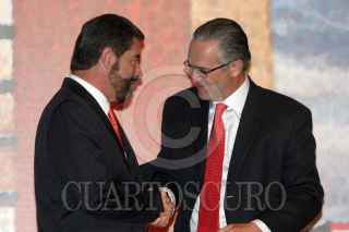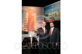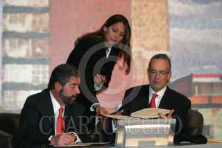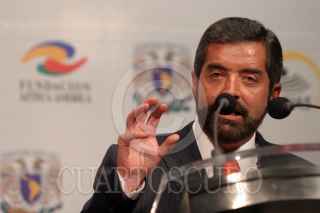 MÉXICO, D.F., 30OCTUBRE2007.- Juan Ramón de la Fuente, réctor de la UNAM, junto con el presidente de TV Azteca, firmaron un convenio de colaboración para el desarrollo de proyectos a la educación, formación académica, información y difusión cultural, enfocado al aopoyo de los migrantes que radican en Estados Unidos, en el Foro 5 de TV Azteca. FOTO: MOISÉS PABLO/CUARTOSCURO.COM