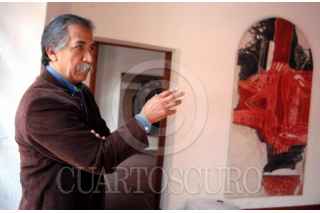 ZACATECAS, ZACATECAS, 16MAYO2025.- Ismael Guardado, destacado artista plástico zacatecano, murió la tarde de este día a la edad de 82 años. La muerte del artista originario de Ojocaliente, Zacatecas, fue confirmada por el Instituto de Cultura, "Con profundo respeto despedimos al maestro Ismael Guardado... artista multidisciplinario cuya obra trascendió fronteras...". En la imagen, el 24 de enero de 2005, el artista visual Ismael Guardado , coordina el montaje de su exposición "Lo sereno y lo insólito" que se inaugura en Casa de la Primera Imprenta de América. Son expuestas 50 piezas entre pinturas , textiles y esculturas. FOTO: ARCHIVO /GERMÁN ROMERO /CUARTOSCURO.COM