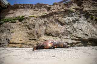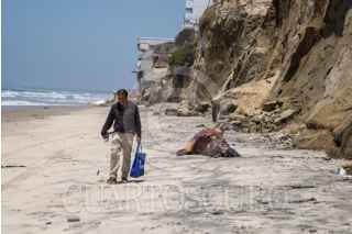 TIJUANA BAJA CALIFORNIA 16MAYO2025.- Un lobo marino y lo que parece ser su cría terminaron varados sin vida en Playas de Tijuana. Ambos fueron enterrados en el lugar, pero a los pocos días la marea los desenterró. Hasta la fecha, las autoridades no han vuelto a atender la situación, por lo que vecinos de la zona exigen que se tomen las medidas correspondientes. Luis Fernando Acosta, vecino de los condominios Costa en Playas de Tijuana, comentó que hace casi dos semanas aparecieron en la orilla de la playa un lobo marino y lo que parece ser una cría, ambos sin vida, por lo que llamaron a las autoridades para que tomaran las medidas pertinentes. Señaló que llegaron al lugar dos trabajadores para hacer un hoyo donde los enterraron; sin embargo, no fue lo suficientemente profundo, ya que a los pocos días el mar desenterró los cuerpos. Según Luis, los vecinos y usuarios de la playa se encuentran preocupados porque el cuerpo del mamífero está muy hinchado y podría reventarse en cualquier momento, además de que los cuerpos generan un olor muy desagradable. A pesar de que han solicitado en varias ocasiones el apoyo de las autoridades, no han recibido respuesta para atender la situación, por lo que exigen que se tomen las medidas necesarias para no afectar a los usuarios de la playa y evitar que las personas se acerquen demasiado a los cuerpos. Desde el mes de febrero, se han registrado múltiples casos de mamíferos acuáticos varados en las costas de Playas de Tijuana, Rosarito y Ensenada, derivados de la intoxicación por ácido domoico. Al menos 40 mamíferos han perdido la vida, de acuerdo con la Procuraduría Federal de Protección al Medio Ambiente. FOTOS: LUIS BAUTISTA / CUARTOSCURO.COM