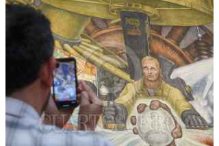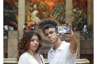 CIUDAD DE MÉXICO, 18MAYO2025.- Mujeres fotografían una pieza exhibida en Palacio de Bellas Artes, en el marco del Día Internacional de los Museos. FOTO: MAGDALENA MONTIEL/CUARTOSCURO.COM