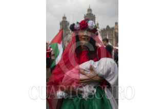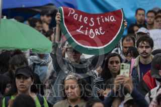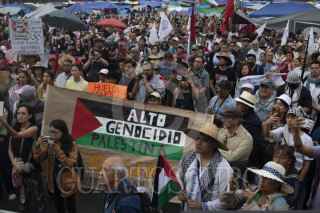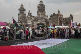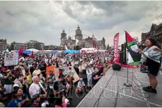 CIUDAD DE MÉXICO, 18MAYO2025.- Integrantes de la CNTE y activistas marcharon de manera pacifica desde el Ángel de la Independencia hasta la Plancha del Zócalo para ofrecer mitin y pedir al gobierno de México que se posicione a favor de que cese el fuego en Palestina. FOTO: ANDREA MURCIA /CUARTOSCURO.COM