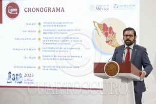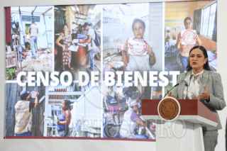 CIUDAD DE MÉXICO, 19MAYO2025.- Ariadna Montreal, secretaria de Bienestar, habló sobre el censo que la dependencia esta realizando en el tema de vivienda, durante la mañanera del pueblo en Palacio Nacional. FOTO: MOISÉS PABLO/CUARTOSCURO.COM