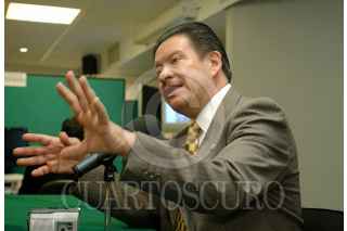 MÉXICO, D.F., 30OCTUBRE2007.- Carlos Navarrte Ruíz, coordinador del Grupo Parlamentario del PRD en el Senado, ofreció una conferencia de prensa en la que aclaró que entre e PRD y el titular del Ejecutivo no habrá diálogo alguno, puesto que su partido no reconoce al gobierno actual como legítimo, en el Senado de la República. FOTO: ISRAEL VERA/CUARTOSCURO.COM