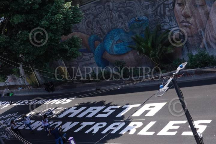 CIUDAD DE MÉXICO, 19MAYO2025.- Frente Amplio de Familias Buscadoras de Verdad Memoria y Justicia Luciérnagas mantienen bloqueada calzada Tlalpan, afuera del metro chabacano, en donde denuncian la violencia institucional debido a la suspensión de la Brigada de Búsqueda de Pamela Gallardo del día de hoy en el Ajusco. FOTO: GRACIELA LÓPEZ/CUARTOSCURO.COM