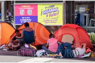 CIUDAD DE MÉXICO, 19MAYO2025.- Propaganda para votar el próximo primero de junio por el nuevo Poder Judicial mientras Maestros de la CNTE amplían el plantón al no llegar a acuerdos en mesas de diálogo en el Zócalo y calles aledañas. FOTO: ANDREA MURCIA /CUARTOSCURO.COM