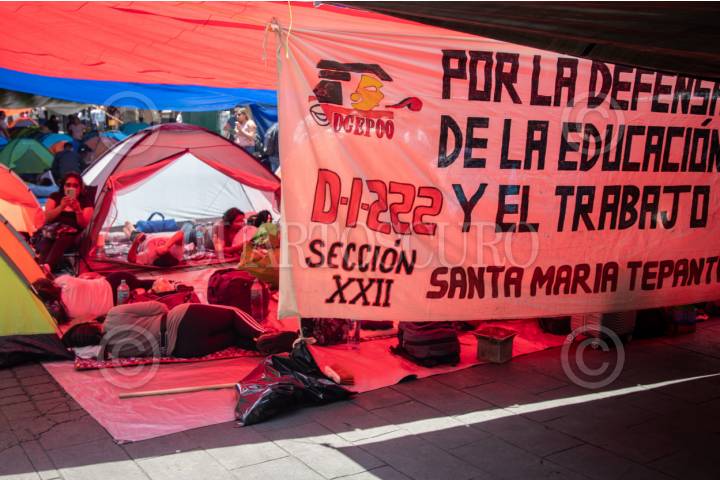 CIUDAD DE MÉXICO, 19MAYO2025.- Maestros de la CNTE amplían el plantón al no llegar a acuerdos en mesas de diálogo. Los maestros de la Coordinadora Nacional de Trabajadores de la Educación rechazaron el aumento salarial de 10% ofrecido por la presidenta Claudia Sheinbaum y mantienen un plantón en el Zócalo ampliándolo a calles aledañas. FOTO: ANDREA MURCIA /CUARTOSCURO.COM