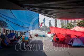 CIUDAD DE MÉXICO, 19MAYO2025.- Maestros de la CNTE amplían el plantón al no llegar a acuerdos en mesas de diálogo. Los maestros de la Coordinadora Nacional de Trabajadores de la Educación rechazaron el aumento salarial de 10% ofrecido por la presidenta Claudia Sheinbaum y mantienen un plantón en el Zócalo ampliándolo a calles aledañas. FOTO: ANDREA MURCIA /CUARTOSCURO.COM