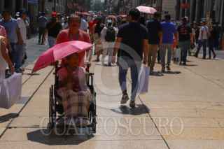 CIUDAD DE MÉXICO, 19MAYO2025.- Una persona de la tercera edad se protege del sol utilizando una sombrilla. FOTO: DANIEL AUGUSTO/ CUARTOSCURO.COM