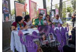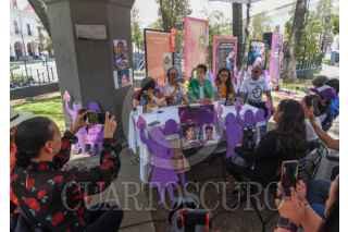 TOLUCA, ESTADO DE MÉXICO, 19 MAYO 2025.- Lorena Gutiérrez, mamá de Fátima, víctima de feminicidio, acompañada por María de la Luz Estrada, directora del Observatorio Ciudadano Nacional del Feminicidio (OCNF), y Ana Yeli Pérez, asesora jurídica, y la diputada local Ana Yurixi Leyva, en conferencia de prensa dieron a conocer la reciente sentencia de la SCJN, en donde reconoce a los familiares de la pequeña Fátima Quintana como víctimas y ordena medidas de reparación integral. FOTO: CRISANTA ESPINOSA AGUILAR