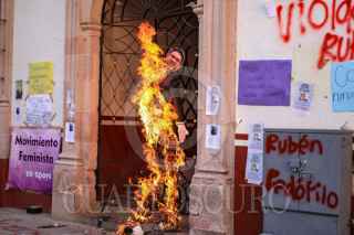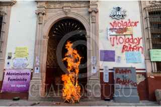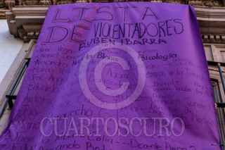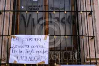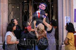 ZACATECAS, ZACATECAS, 19MAYO2025.- Mujeres estudiantes, profesoras y trabajadoras de la Universidad Autónoma de Zacatecas y que son parte del Movimiento Feminista en el estado, se manifestaron a las puertas del edificio de Rectoría, para demandar la destitución del Rector, Rubén Ibarra Reyes, acusado de abuso sexual agravado en contra de una menor de edad. Esta tarde el H. Consejo Universitario comenzó la sesión extraordinaria para abordar el tema de la destitución. FOTO: ADOLFO VLADIMIR /CUARTOSCURO.COM
