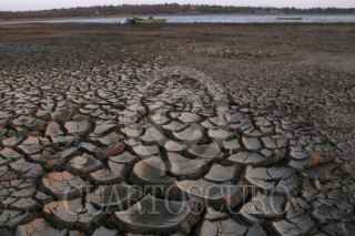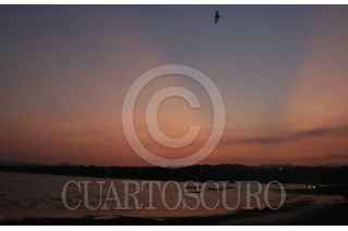 MIACATLÁN, MORELOS, 19MAYO2025.- Según la Comisión Nacional del Agua, el temporal de estiaje 2025 en el país esta por concluir. Los seis meses de secas iniciaron en los últimos días de noviembre y se espera termine con las primeras lluvias al final de mayo. Algunos cuerpos de agua en la entidad como la laguna El Rodeo esta a menos de cincuenta por ciento de su capacidad, esto se comprueba al caminar por su lecho lacustre agrietado. En la imagen, un murciélago vuela sobre la disminuida laguna El Rodeo. FOTO: MARGARITO PÉREZ RETANA/CUARTOCURO.COM