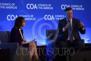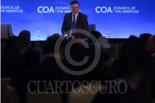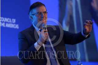 CIUDAD DE MÉXICO, 20MAYO2025.- El secretario de Economía, Marcelo Ebrard, participó este martes en el foro “México: Impulsando la Competitividad de América del Norte”, organizado por el Council of the Americas. FOTO: DANIEL AUGUSTO/CUARTOSCURO.COM
