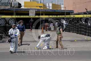 ROSARITO, BAJA CALIFORNIA, 19MAYO2025.- ROSARITO, BAJA CALIFORNIA, 19MAYO2025.- Dos agentes de la Fiscalía General del Estado (FGE)resultaron heridos tras un ataque armado ocurrido la tarde del lunes. El hecho tuvo lugar en la llantera y mofles Arredondo Il, ubicada sobre la calle Artículo 27 Constitucional, cerca del Palacio Municipal de Playas de Rosarito. Fuentes cercanas a la investigación señalaron que uno de los lesionados es el jefe de la Unidad de Homicidios de la FGE en ese municipio FOTO: OMAR MARTÍNEZ/CUARTOSCURO.COM