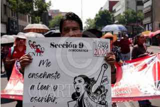 CIUDAD DE MÉXICO, 20MAYO2025.- Docentes que integran la sección 9 de la Coordinadora Nacional de Trabajadores de la Educación (CNTE) continuaron con su jornada de lucha en la capital, marcharon desde el metro Chabacano hasta la estatua del Caballito para exigir al gobierno de la presidenta Claudia Sheinbaum que cumpla con el pliego petitorio en donde se exige: la abrogación de la Ley del ISSSTE 2007 y de la Reforma Educativa; eliminación del régimen de excepción laboral; desaparición de la UMA y cuentas individuales; aumento salarial de 100 por ciento directo y Homologación de las prestaciones, por mencionar algunas. FOTO: GALO CAÑAS/CUARTOSCURO.COM