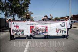 TIJUANA BAJA CALIFORNIA 20MAYO2025.- Maestros de la CNTE realizaron una caravana de protesta desde la Secretaría de Educación hasta el Aeropuerto Internacional de Tijuana, bloqueando todos los carriles de la avenida Aeropuerto con unos 50 vehículos. La movilización, que avanzó a vuelta de rueda, provocó fuerte tráfico y obligó a algunos pasajeros a caminar para no perder sus vuelos. La protesta es parte de una jornada nacional contra la Ley del ISSSTE, la negativa al aumento salarial del 100% y en apoyo al plantón nacional. FOTO OMAR MARTÍNEZ /CUARTOSCURO.COM