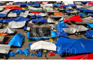 CIUDAD DE MÉXICO. 20MAYO2025.- Se amplio el plantón de maestros de la CNTE, en el centro histórico de la Capital. Durante el día algunos profesores salen a protestar y otros se quedan con el resguardo del campamento. FOTO: VICTORIA VALTIERRA/CUARTOSCURO.COM
